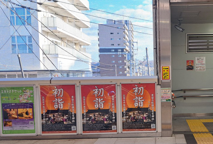 初詣の準備ができ、豊田駅には大型のポスターが掲示されました