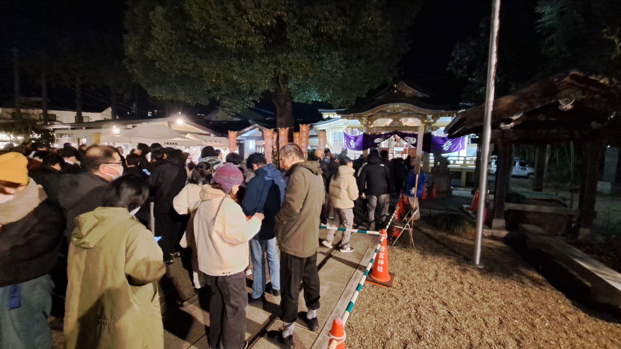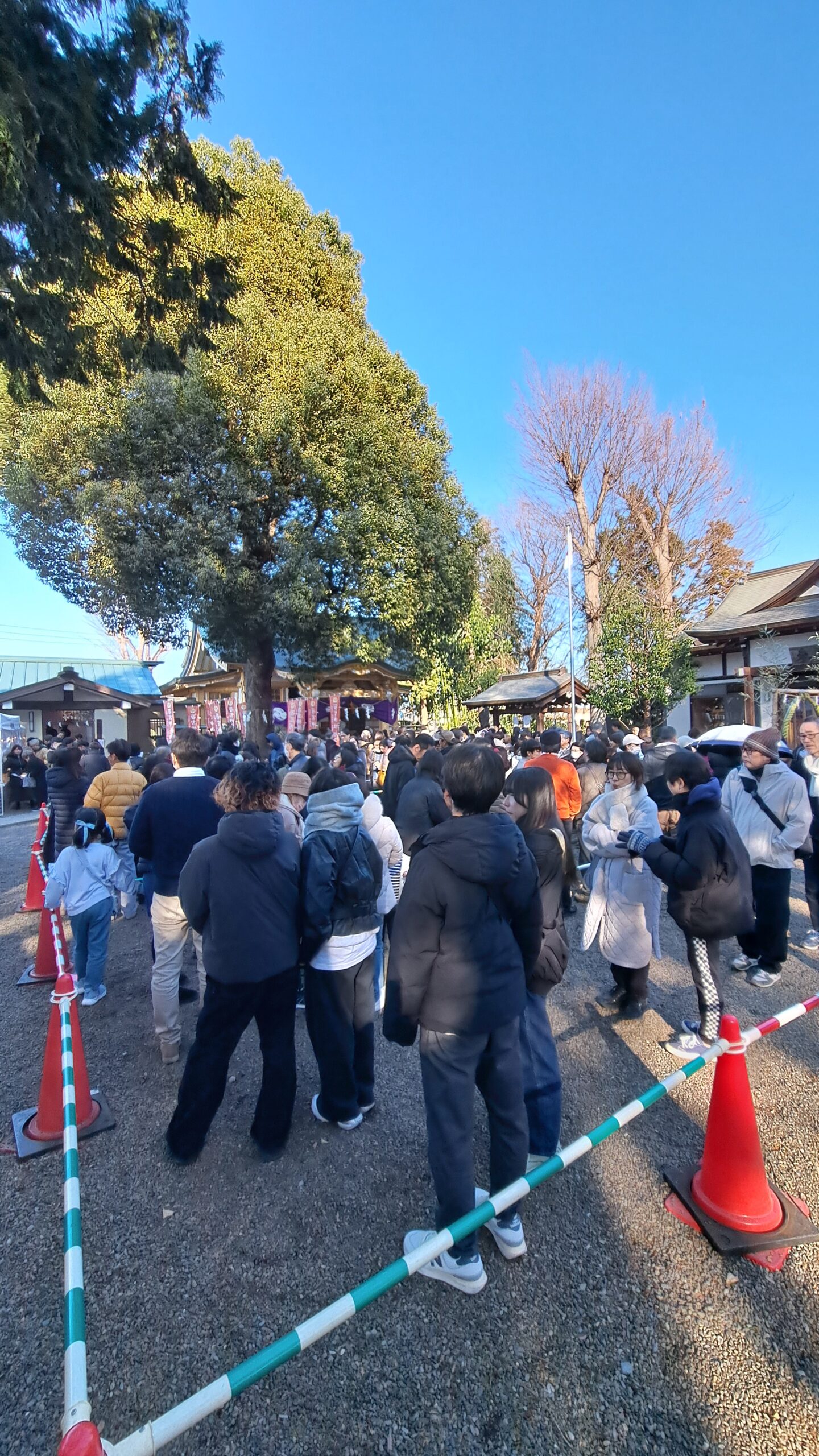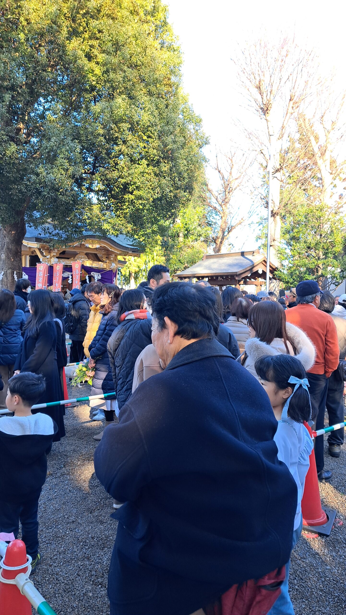 令和8年(2026)の初詣は、多くの参拝者で賑わいました 初詣に先立ち、神社拝殿では宮司によって歳旦祭が役員や 巫女さんが参加して、厳かに行われました。 既に、境内には初詣を待ち構える参拝の皆さんが並んでいました。 元旦も早朝から、多くの無皆さんが参拝に来られました。