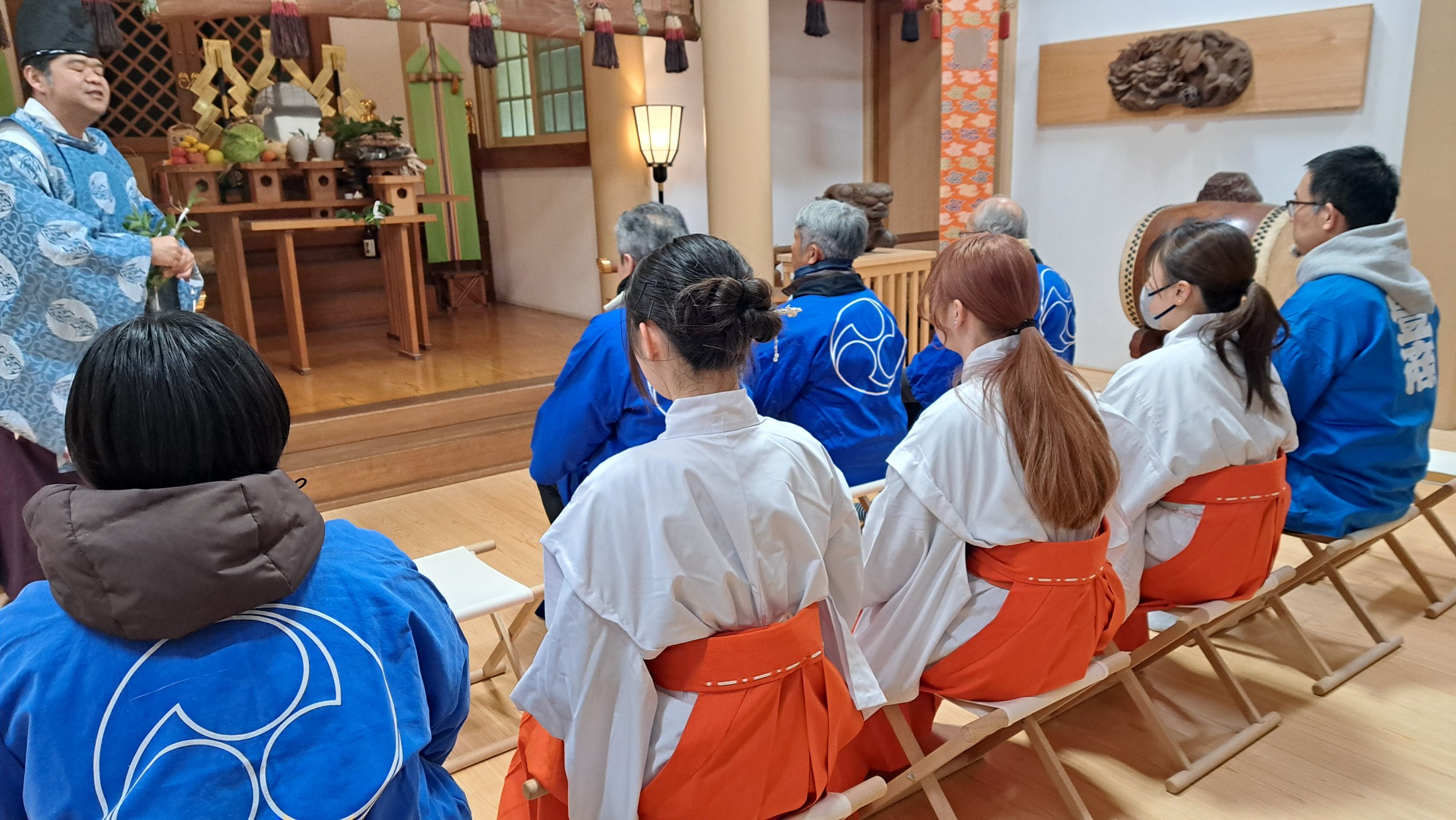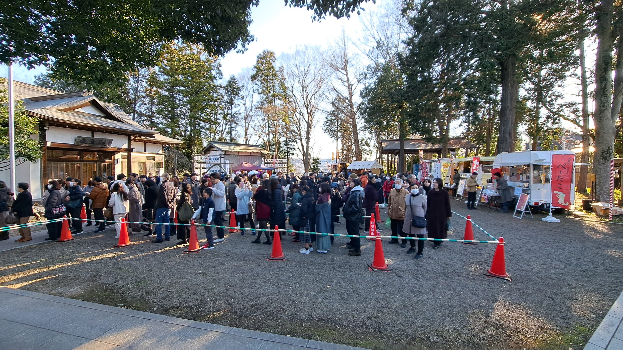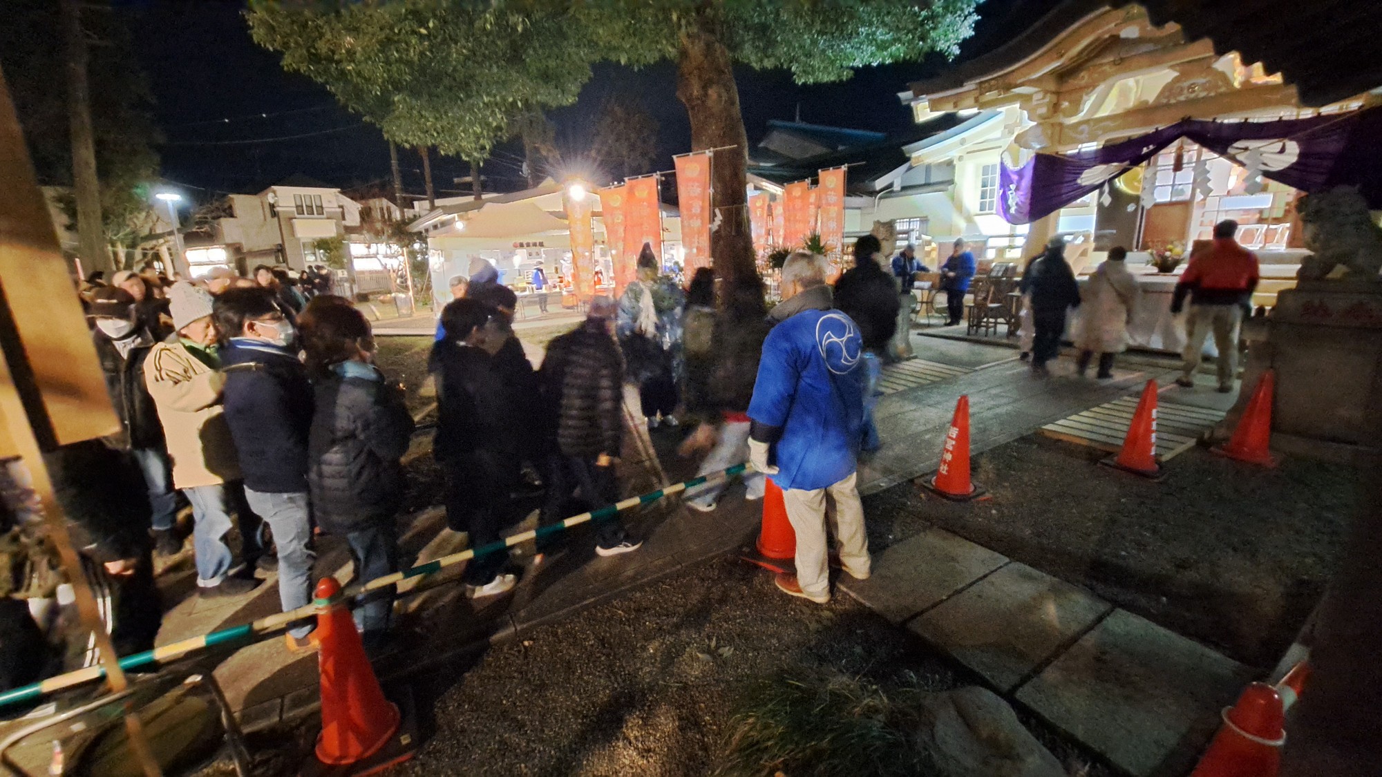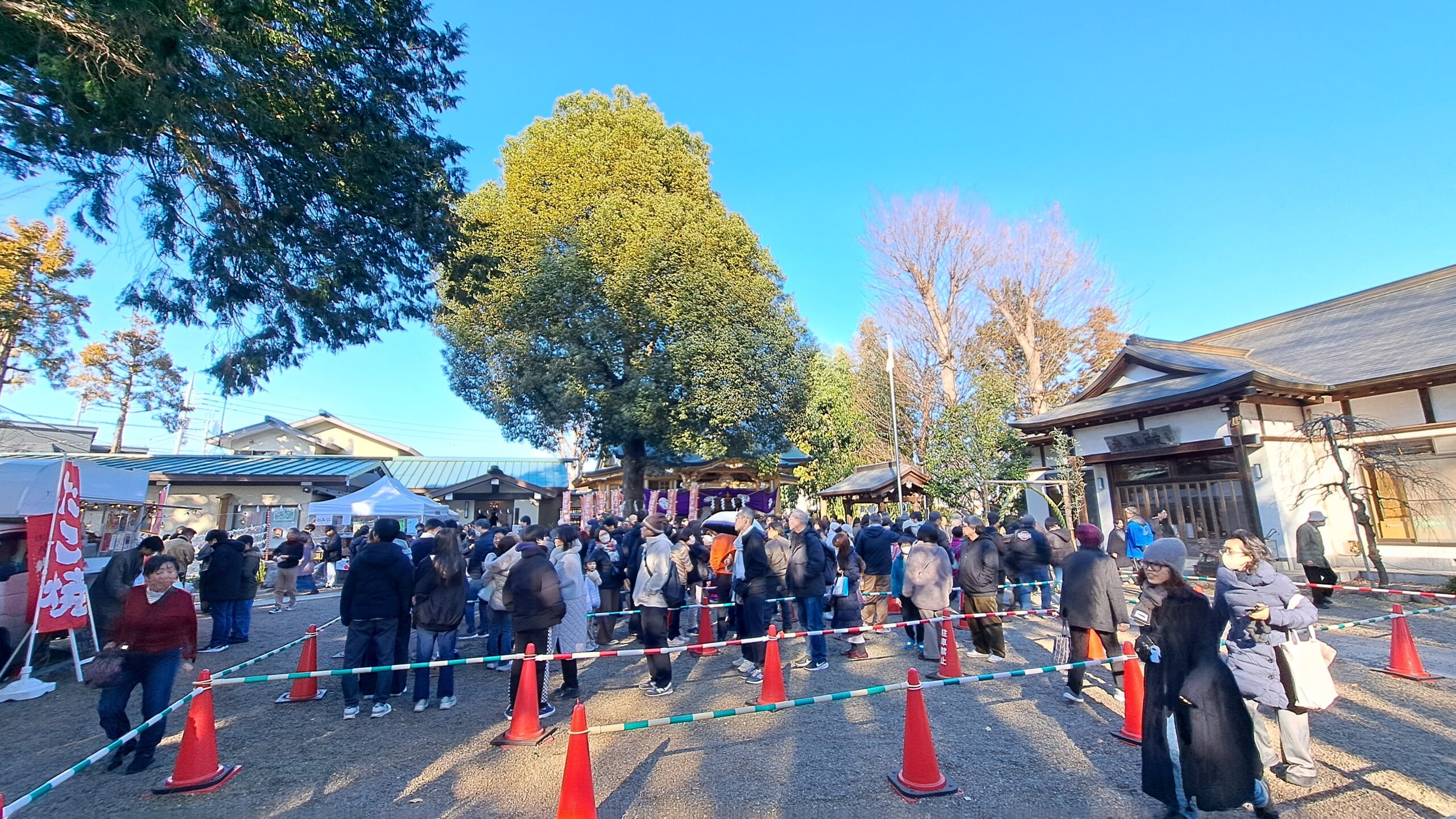 令和8年(2026)の初詣は、多くの参拝者で賑わいました 初詣に先立ち、神社拝殿では宮司によって歳旦祭が役員や 巫女さんが参加して、厳かに行われました。 既に、境内には初詣を待ち構える参拝の皆さんが並んでいました。 元旦も早朝から、多くの無皆さんが参拝に来られました。