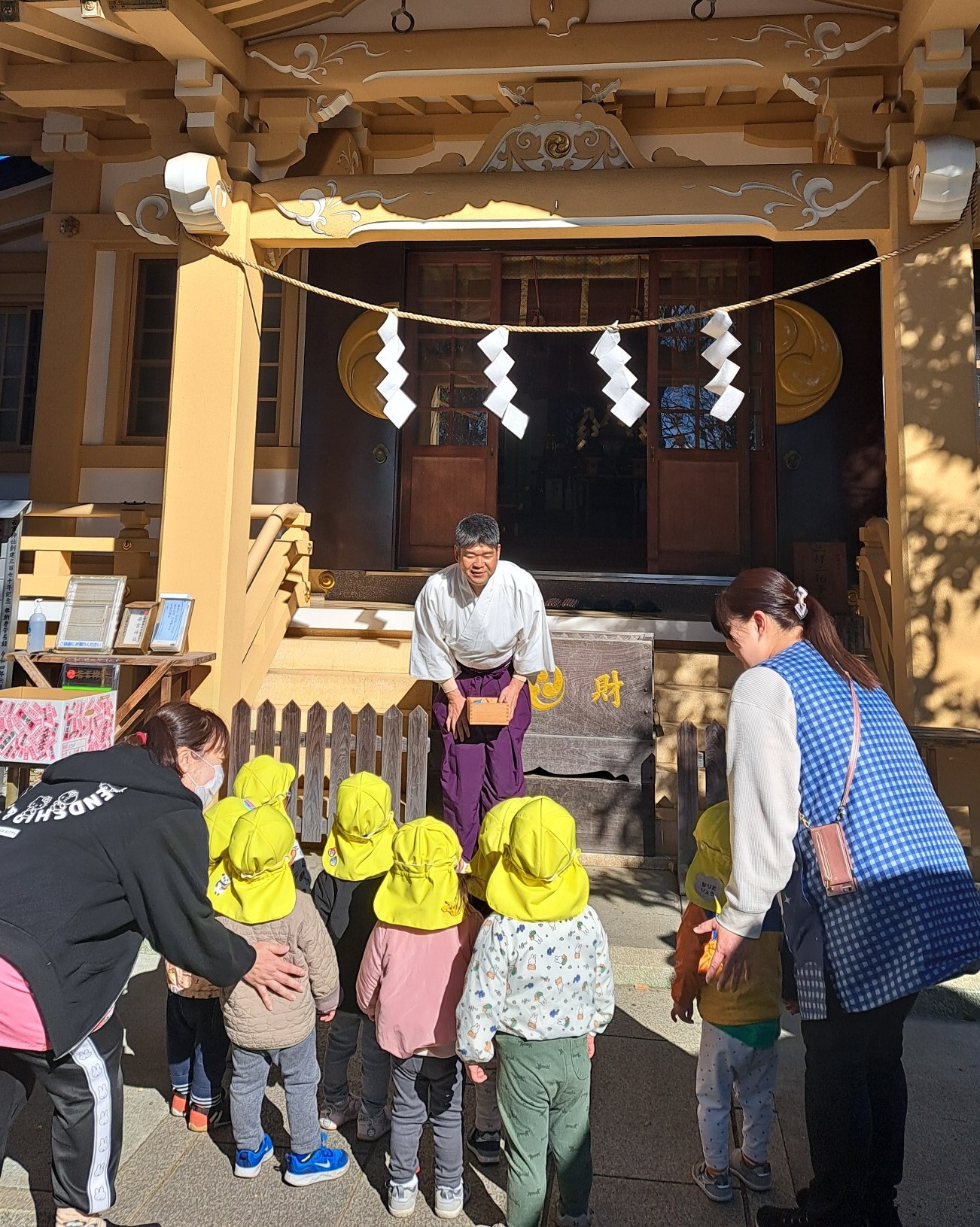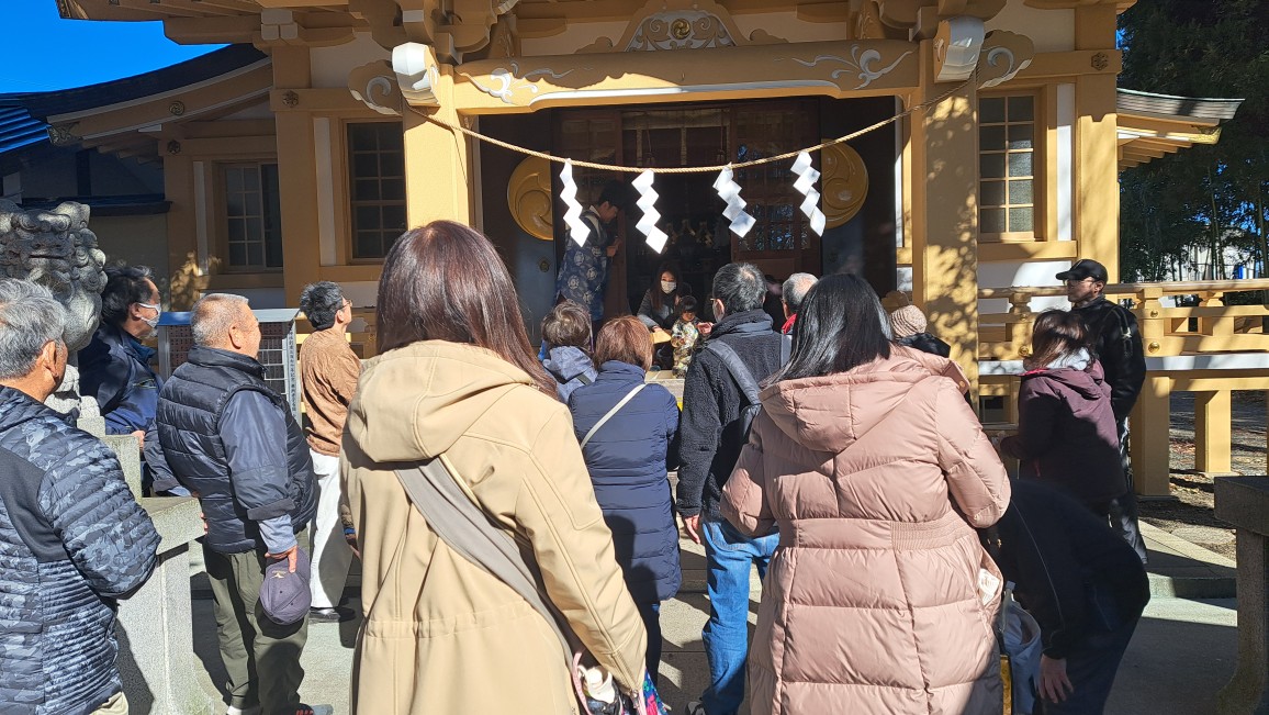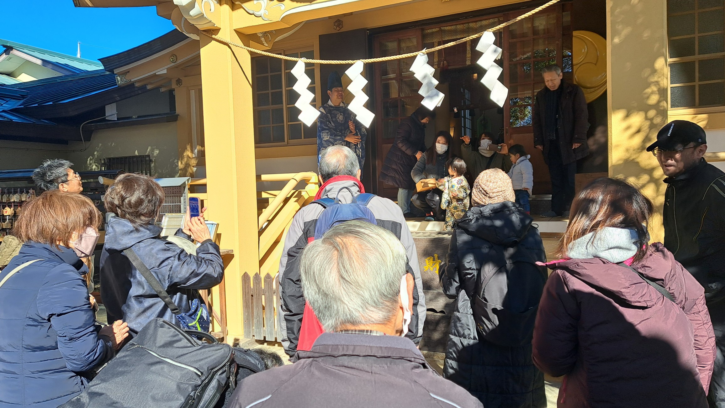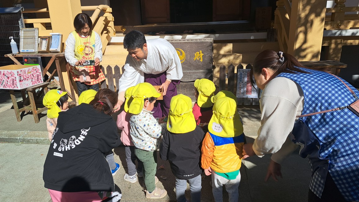節分祭の神事の後、地域の皆さまや氏子の方々とともに、遊びに来てくれた近くの二つの保育園の園児たちも参加し、にぎやかに豆まき祭りを楽しみました。