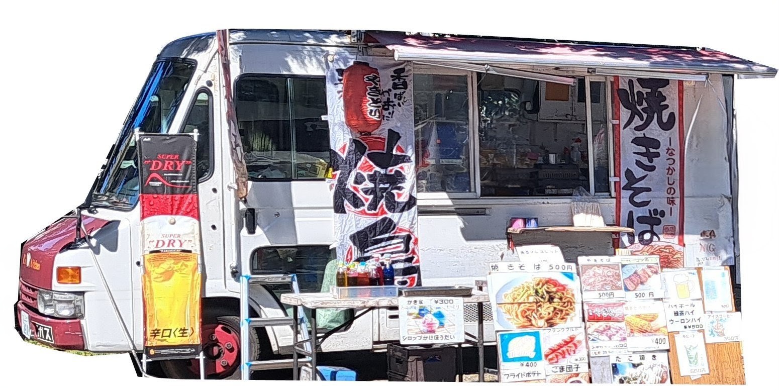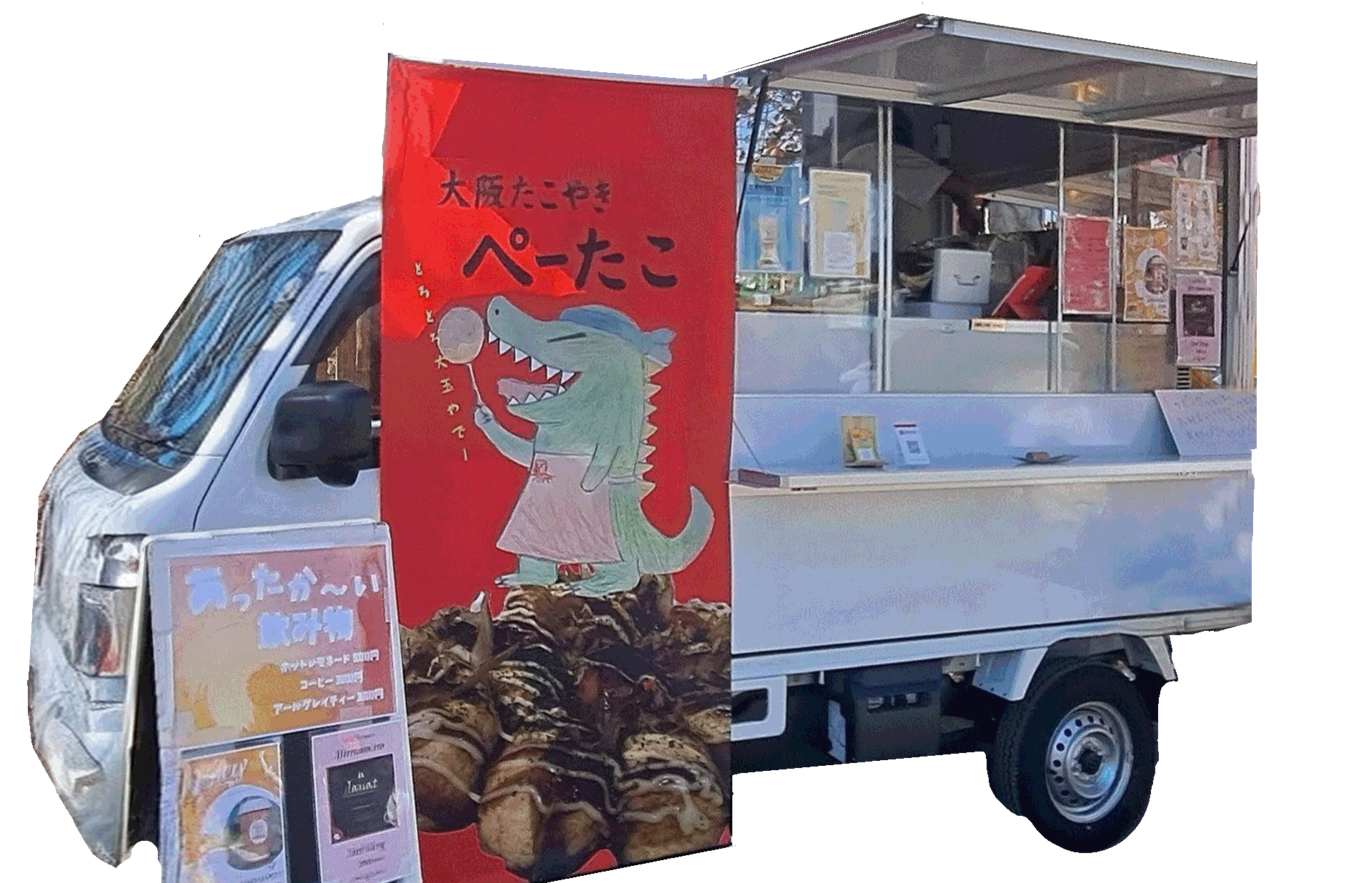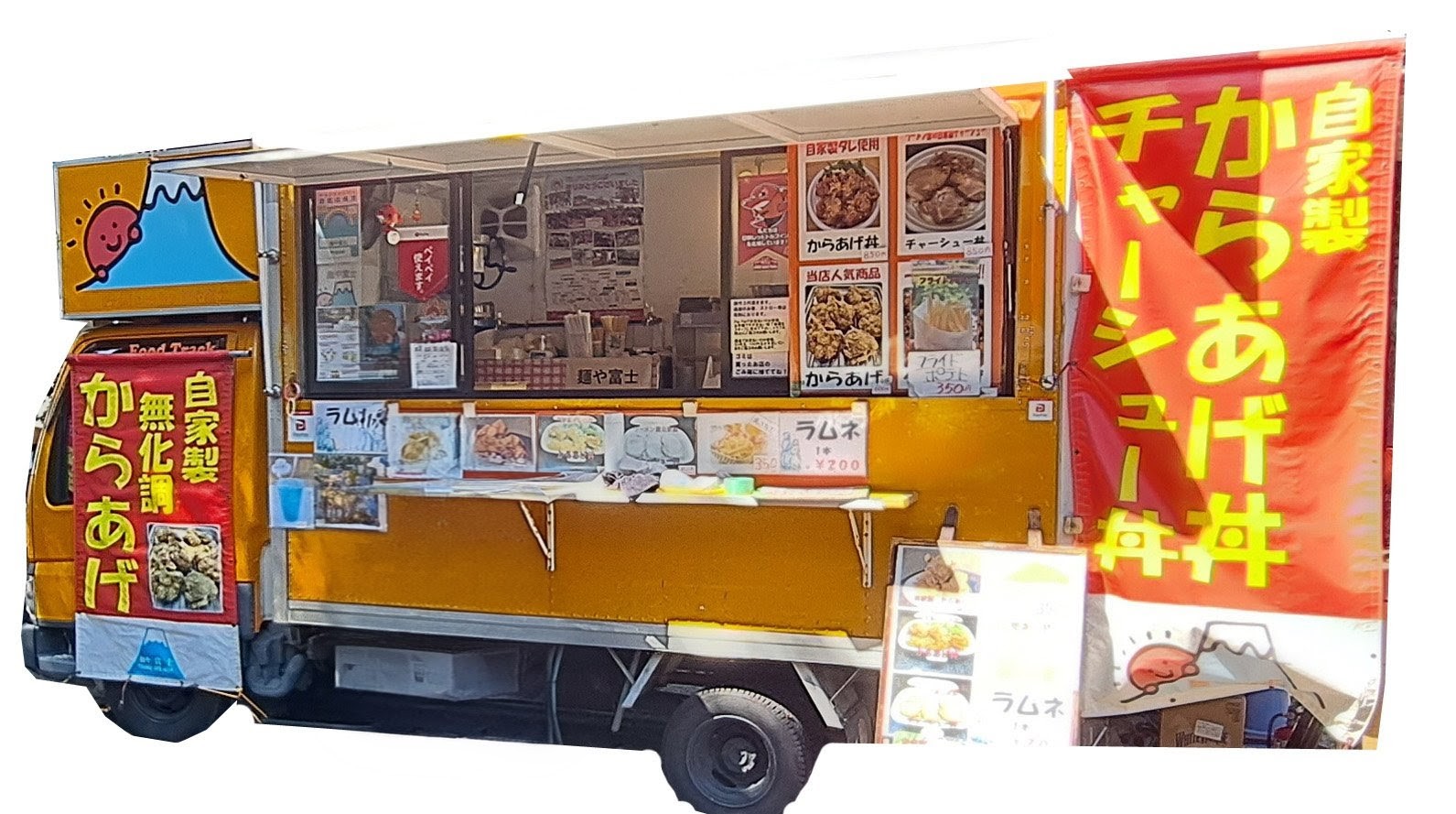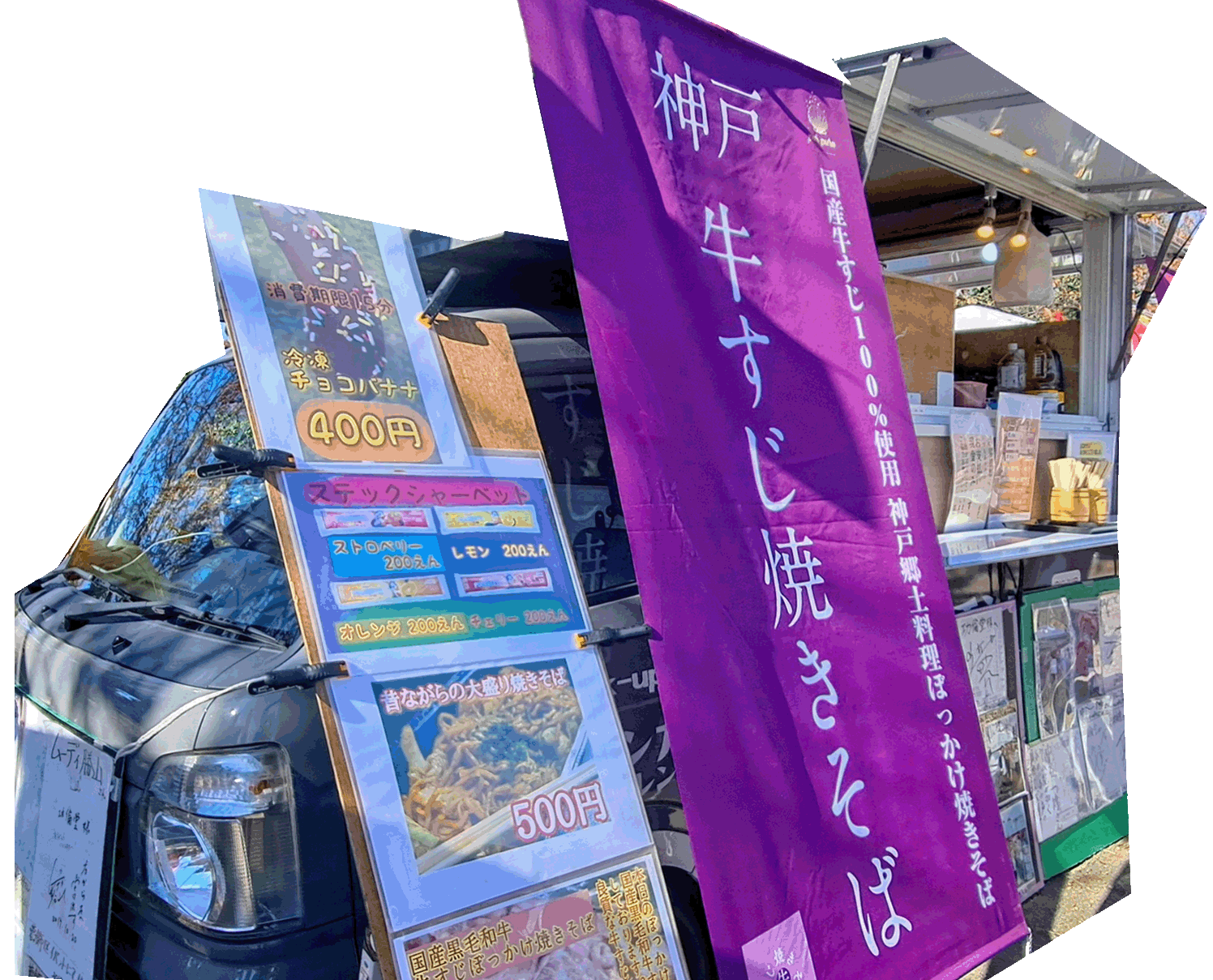 年末31日から新年4日の日曜日までは、マヨキチ、麵や富士のほか新たに、神戸牛すじ焼きそば、大阪たこ焼き、ベビーカステラなど。